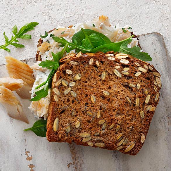 Marinovaný losos, čerstvý sýr, rukola, mascarpone
