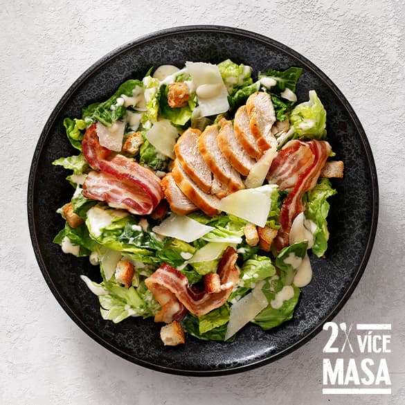 Dvojitá porce kuřecích steaku, parmezán, salát, slanina, caesar dresink